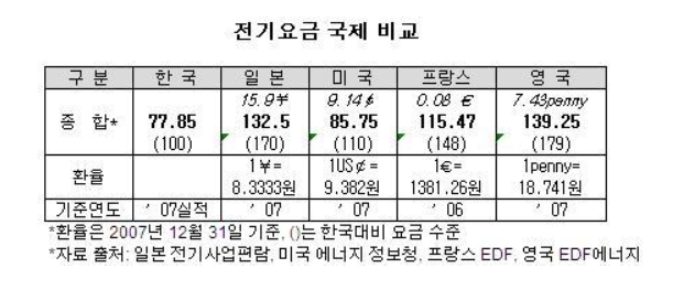 과연 어느 정도 오른 것인지 다들 궁금하실 겁니다. ... kWh 당 11.4원 올렸다고 하는데, 실제 국민들이 체감하고 있는 인상폭은 충격 그 자체 인 상황입니다. 물론, 우리나라의 전기 요금은 해외 다른 나라들에 비해 저렴한 수준이었습니다. (아래 표 참조) 하지만, 인상 폭 자체는 1970~80년대 오일 쇼크 시기 이후로 가장 큰 폭의 인상이라고 합니다.